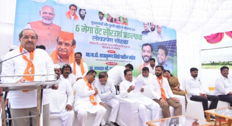 शिर्डी, दि. ४ – शासनाने मुख्यमंत्री सौर ऊर्जा कृषी वाहिनी योजनेच्या माध्यमातून राज्याला भारनियमनमुक्त करण्याचे धोरण स्वीकारले असून, तालुक्यातील आठ गावांसाठी सुरू झालेला सौर ऊर्जा प्रकल्प शेतकऱ्यांसाठी वरदान ठरेल, असा विश्वास जलसंपदा मंत्री तथा जिल्ह्याचे पालकमंत्री राधाकृष्ण विखे पाटील यांनी व्यक्त केला.