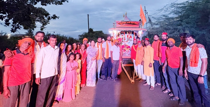 गावातील महिलांनी पारंपरिक पद्धतीने सडा टाकून मिरवणुकीचा मार्ग सजविला होता. अनेकांनी घरासमोर रांगोळ्या काढून मिरवणुकीचे उत्साहात स्वागत केले.