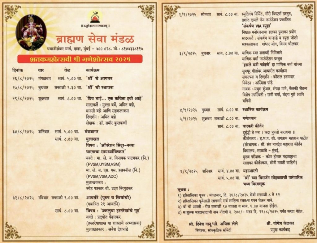 मुंबईत ब्राह्मण सेवा मंडळा’चा शतकमहोत्सवी गणेशोत्सव ‘