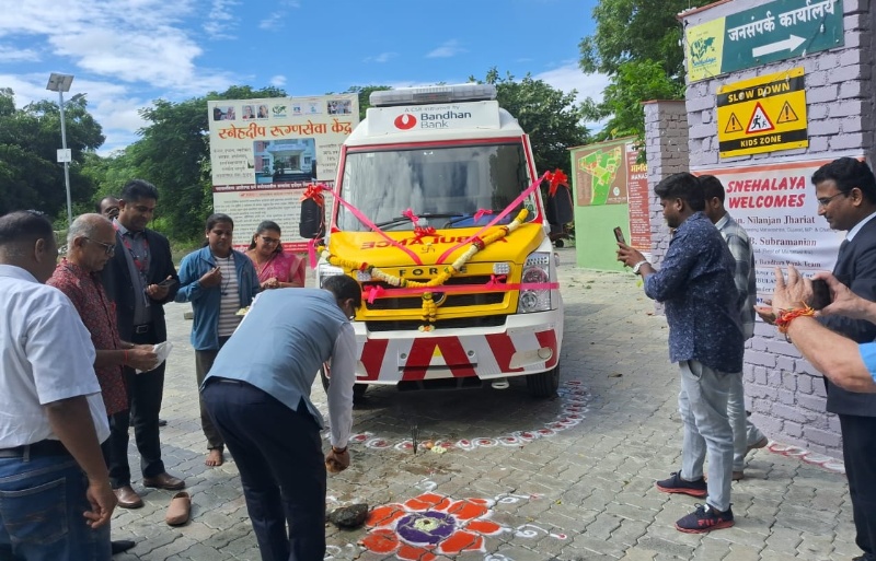 बंधन बँकेतर्फे सामाजिक दायित्व योजनेतून ( CSR) देशभरात 18 दर्जेदार रुग्णवाहिका गरीब वंचितांसाठी उपलब्ध करून देण्याचा निर्णय बँकेने घेतला . या उपक्रमाची सुरुवात स्नेहालय संस्थेच्या वैद्यकीय सेवा उपक्रमांसाठी सुसज्ज रुग्णवाहिका देऊन करण्यात आला.