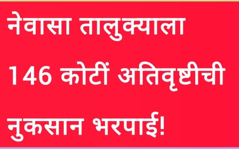 नेवासा तालुक्यात 146 कोटी नुकसान भरपाई मंजूर! :