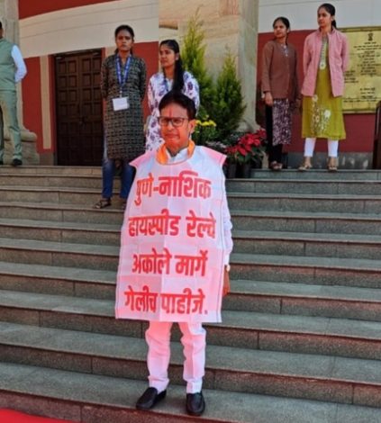 पुणे-नाशिक हायस्पीड रेल्वे पहिल्या प्रस्तावानुसार नाशिक -सिन्नर -अकोले सरहद्द मार्गे -संगमनेर -आळेफाटा -पुणे मार्गेच गेली पाहिजे. ह्या अत्यंत महत्वाच्या मागणीसाठी लक्षवेधी आंदोलन आज नागपूर अधिवेशनाच्या तिसऱ्या दिवशी विधानभवन परिसरात केले.