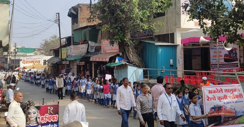 रेल्वे च्या मागणीसाठी कोतुळ  येथे विद्यार्थी व नागरिक  रस्त्यावर!