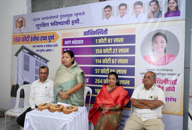 संग्राम नागरी सहकारी पतसंस्थेने आपल्या यशस्वी वाटचालीत आणखी एक महत्त्वाचा टप्पा गाठत १५० कोटी रुपयांच्या ठेवींचा टप्पा यशस्वीपणे पार केला आहे. या उल्लेखनीय यशामध्ये संस्थेच्या सर्व सभासद, ठेवीदार तसेच हितचिंतकांचा मोलाचा सहभाग लाभला असून संस्थेच्या वतीने सर्वांचे मनःपूर्वक आभार व्यक्त करण्यात आले आहेत.