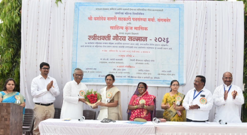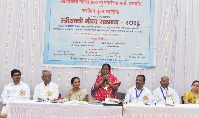 साहित्य कुंज मासिक आणि श्री यशोदेव नागरी सहकारी पतसंस्था, संगमनेर यांच्या संयुक्त विद्यमाने आयोजित स्त्रीशक्ती गौरव सन्मान सोहळ्यात त्या बोलत होत्या.