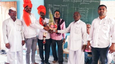 हिंदीरत्न पुरस्कार प्राप्त पोपटराव आवटे यांचा माजी आमदार नरेंद्र घुले यांच्याकडुन गौरव